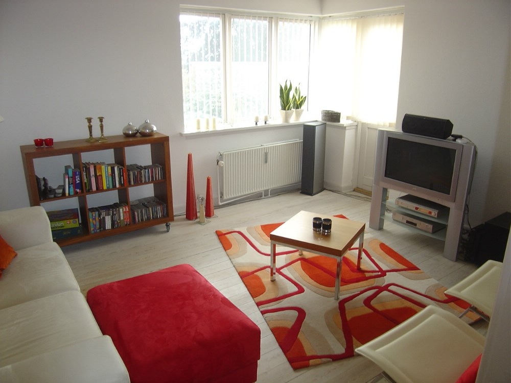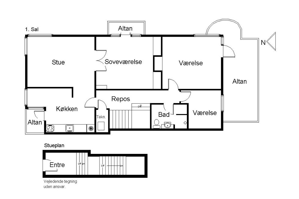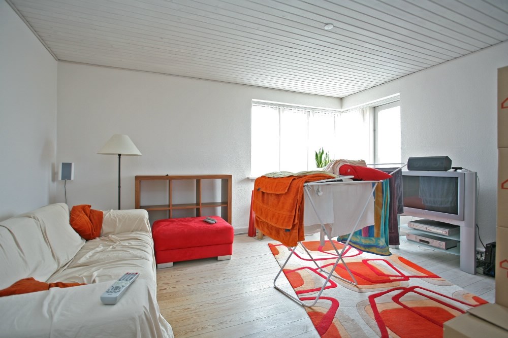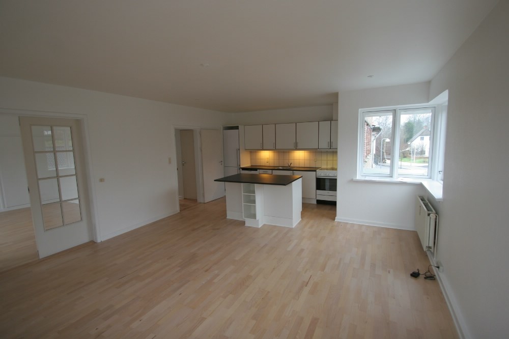 Pæn opholdsstue med udgang til altan. Trægulve i alle opholdsrum. Lejligheden er lige klar til indflytning. Tilhørende muret garage.
